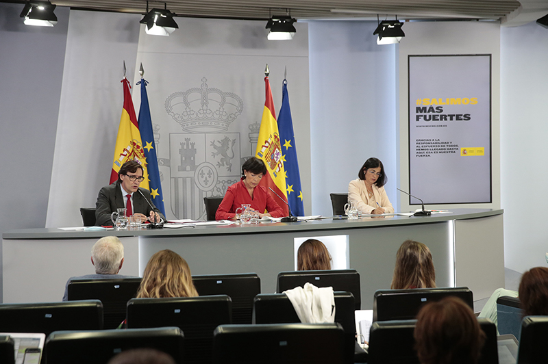 Los ministros Illa, Celaá y Darias, en comparecencia posterior a la Conferencia Multisectorial. © POOL MONCLOA