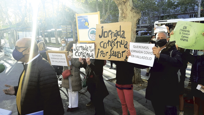 Manifestación de la Plataforma Jornada Covid CyL frente a la Consejería de Sanidad, en Valladolid. P. JORNADA COVID