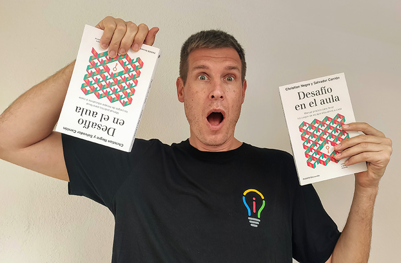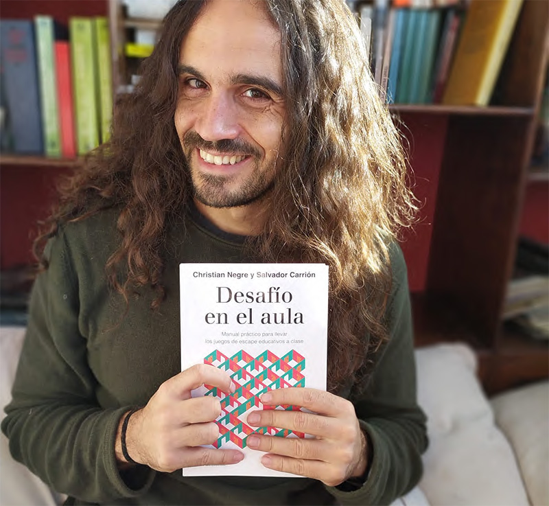 –Negre: A pesar de vivir a 500 kilómetros de distancia, Salva y yo nos conocíamos de haber coincidido en diferentes eventos educativos. La idea de crear el libro fue de Salva. Tras mi participación en SIMO 2018, donde organicé un juego de escape educativo para casi 300 personas, me hizo la propuesta y acepté encantado. El año anterior había organizado otro para 800 en el ITWorldEDU. La intención inicial fue publicarlo mediante micromecenazgo. La sorpresa llegó cuando recibí una llamada de la editorial Paidós del Grupo Planeta pidiéndome escribir un libro a partir de mi experiencia y les comenté que ya habíamos empezado a diseñar un producto similar junto a Salva. Tras unas cordiales negociaciones, pasamos a desarrollar el proyecto en una editorial de primera división.
