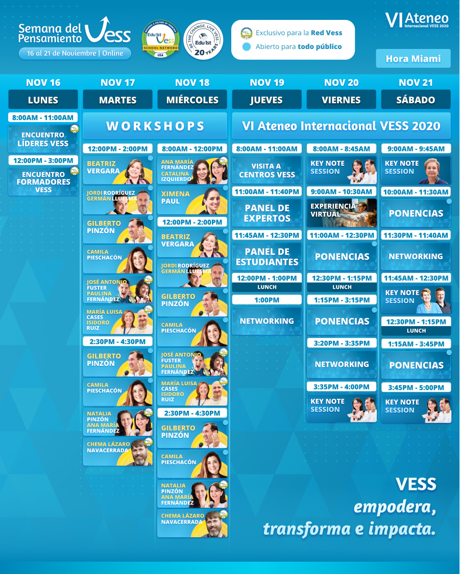 - Sostenibilidad del Modelo VESS frente al cambio: Abordo el tema de cómo seguir implementando VESS y construyendo Culturas de Pensamiento en momentos de transformación y retos como el que hemos vivido en los últimos meses, desde la perspectiva del liderazgo.