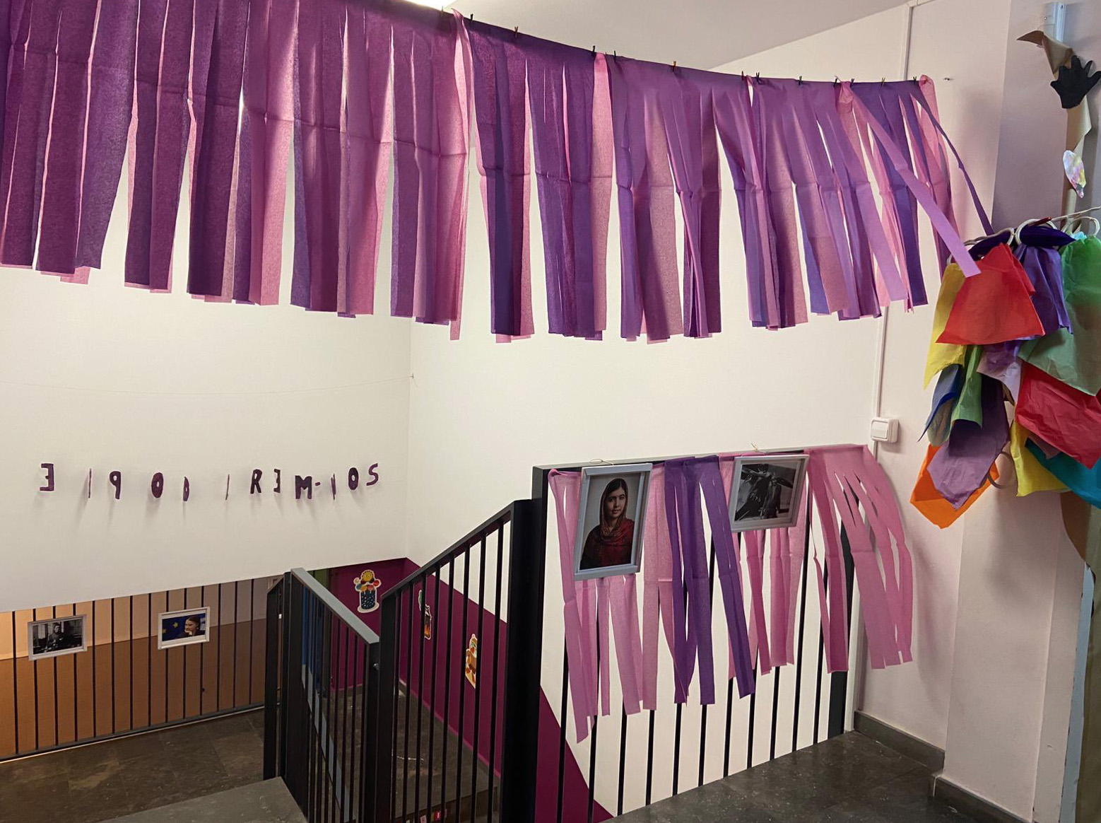 Las connotaciones de los colores rosa y azul, los roles femeninos y masculinos, profesiones, juguetes, deportes, juegos, los micromachismos, la importancia de las letras de muchas canciones, la publicidad estereotipada e incluso la literatura infantil… son algunas de las muchas propuestas que ha llevado a cabo este colegio catalán durante estos días. Sus aulas y pasillos se han llenado de color morado para concienciar a sus estudiantes.
