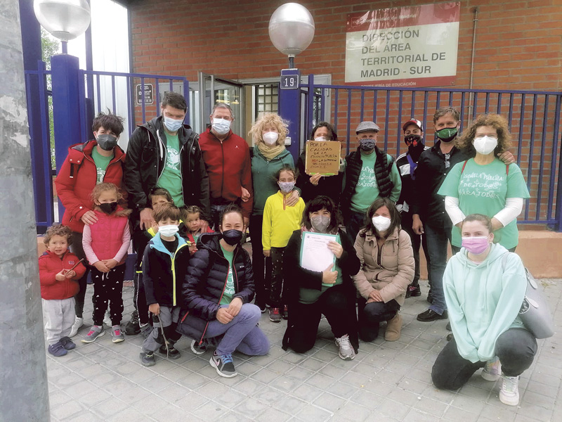 Las familias de las escuelas infantiles «Mafalda», «Casa de niños» y «Prado de Getafe» recogieron firmas y las entregaron, el pasado miércoles 21 de abril, en la DAT Sur de Leganés, para mostrar «su más absoluto rechazo a los reiterados ataques que, por parte del Gobierno de la Comunidad de Madrid, se están ejerciendo sobre las escuelas infantiles municipales de Getafe».