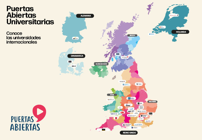 La Educación Internacional va a tener un gran peso en esta nueva edición de Puertas Abiertas Universitarias, y para ello te mostramos las principales universidades de países como Reino Unido, Holanda, Alemania y Dinamarca.