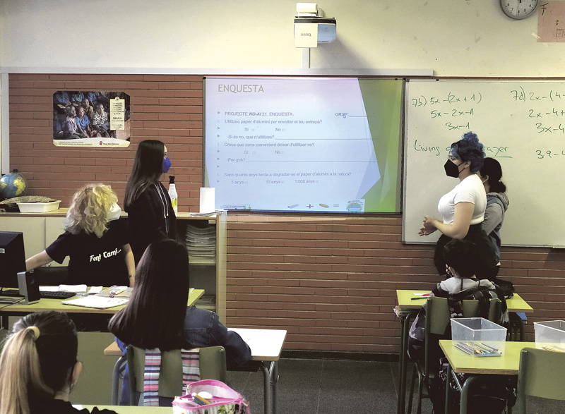 Los alumnos visualizan vídeos sobre el uso del papel de aluminio, las ventajas, los inconvenientes y su reciclaje en la realización de manualidades. Asimismo, se crean encuestas sencillas en las que se pregunta sobre el uso que dan los alumnos, los docentes y el personal no docente de la comunidad educativa. Esas encuestas se pasan por las clases de todo el centro y se crea una zona para depositarlas.