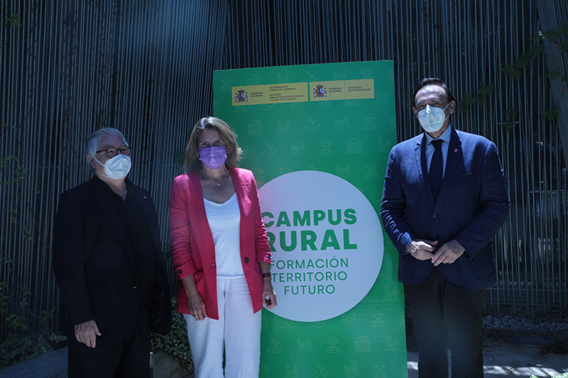 Bajo un sol abrasador en el jardín de la Institución Libre de Enseñanza y protegidos con gorros de paja, la vicepresidenta cuarta y ministra de Transición Ecológica y Reto Demográfico y el titular de Universidades han presentado este «modesto» programa con vocación de permanencia, que en su primer año de vigencia ofrecerá 200 plazas. Es una experiencia para alumnos urbanos, que no podrán vivir en «una residencia de estudiantes en la capital de provincias y todos los días acercarse un rato al pueblo» sino que deberán «convivir, comprender, sentir, desayunar, comer, cenar, sacar y traer de vuelta a las vacas, ver cuál es el problema del farmacéutico rural o del bibliotecario que se desespera para mantener abierto», ha explicado Ribera.