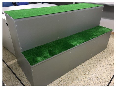 - Material construido: existe mobiliario que su adquisición puede ser muy costosa, pero que podemos construir de forma más económica. Este es el caso de dos graderíos, construidos para permitir al alumnado estar sentados en las zonas de presentación e intercambio de ideas y que permite también el almacenamiento de material en su zona posterior. Destacar que a este material se le incorporaron posteriormente ruedas, para favorecer su movilidad por los espacios del Aula del Futuro.