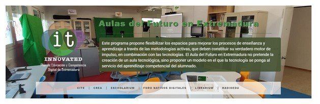 El Programa Aulas del Futuro en Extremadura se encuentra incluido dentro del Plan InnovaTed, que persigue la implantación en los centros educativos de procesos de innovación mediante el uso de las tecnologías de la educación.