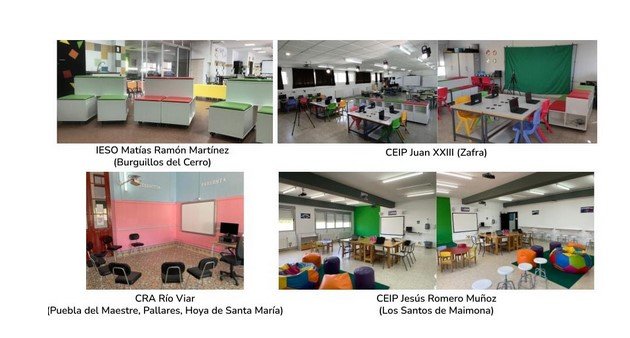 Además, existe una gran cantidad de centros en proceso de desarrollo, llevando a cabo nuevas e interesantes experiencias, como es el caso del IES Bembézar de Azuaga, que ha implicado a su alumnado en la creación de este espacio, el CEIP Manuel Jesús Romero Muñoz de Los Santos de Maimona, que ha implicado en su construcción a asociaciones y organizaciones de la zona como el ayuntamiento o la Fundación Maimona, el CRA Río Viar de Puebla del Maestre, , un centro rural agrupado que ha decidido crear un Aula del Futuro en cada una de sus tres sedes o el CEE Antonio Tomillo, que pretende seguir desarrollando su espacio maker para atender a las necesidades de su alumnado de educación especial.
