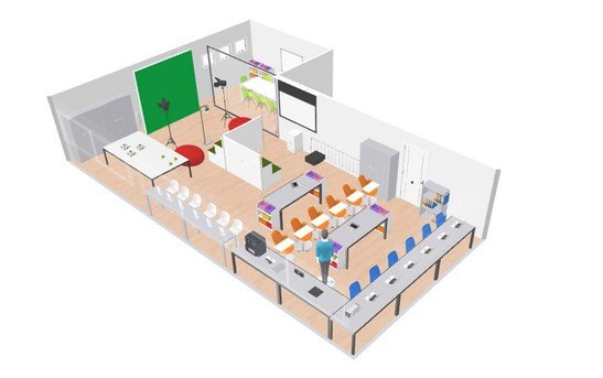 Diseño de la Future Classroom Lab de Bruselas, distribuida en 6 espacios: