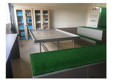- Material adaptado. Un buen ejemplo es la mesa de robótica, creada a partir de dos antiguas mesas y mejorada para nuevos usos. Destacar que los bordes laterales pueden bajarse, dando la posibilidad de utilizar esta mesa para otros usos, como el trabajo colaborativo.