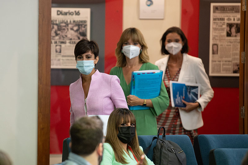 La ministra de Educación y FP, Pilar Alegría (centro), la de Política Territorial y portavoz, Isabel Rodríguez, y la de Industria, Comercio y Turismo, Reyes Maroto. Pool Moncloa/Borja Puig de la Bellacasa