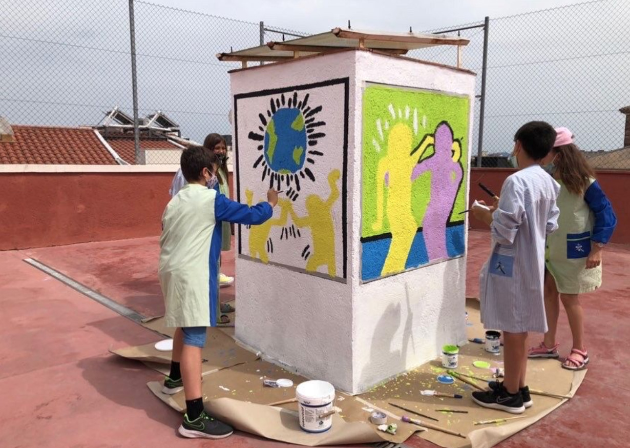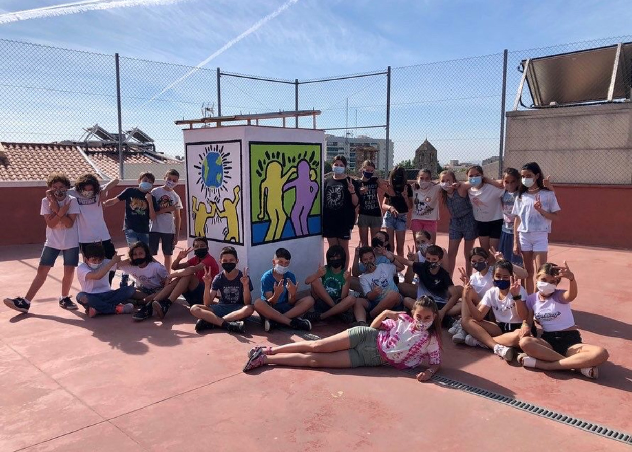El proyecto se realizó como cierre del curso escolar y el colofón fue pintar un mural con pintura acrílica de exterior en el patio. Participaron los 55 alumnos que tiene la escuela en Ciclo Superior. Los estudiantes de este pequeño centro de Terrassa tras días de esfuerzo, esmero y trabajo en equipo, consiguieron llenar su patio de experiencias y color. Con el fin de respetar las medidas sanitarias, los alumnos realizaron las pinturas en grupos y turnos. Utilizaron el recreo como un lugar educativo, estimulante, divertido, de contacto con el aire libre y por lo tanto realizaron un aprendizaje servicio. Podríamos decir que esta última actividad buscaba que los estudiantes: se concienciaran de la importancia de cuidar y respetar su entorno más cercano, colaborasen con el resto de sus compañeros para conseguir un fin común, establecieran un entorno de aprendizaje entre profesores, alumnos y dejasen un centro más bonito y motivador: «Los resultados han sido extraordinarios y los alumnos demostraron una motivación intrínseca. Transformar el entorno, ofreció una propuesta educativa muy atractiva para todo el alumnado, ya que pone en juego el desarrollo de diversos tipos de competencias, facilitando el desarrollo de las diferentes inteligencias. Además, el enfoque que hemos tenido en cuenta es el de las inteligencias múltiples del psicólogo Howard Gardner que señala que hay que desarrollar diferentes potenciales con los que se consiguen diferentes competencias con procesos educativos constructivos y cooperativos. Así el proyecto se define como abierto, constructivo e integrador de los diferentes tipos de inteligencias. Consiguiendo el desarrollo de la iniciativa y autonomía personal y el pensamiento creativo en un ambiente que potencia el interés y la motivación».