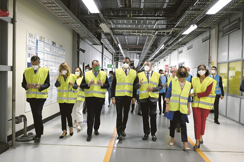 Lo hizo acompañado por la ministra de Educación y Formación Profesional, Pilar Alegría, y la de Industria, Reyes Maroto, además del jefe del Ejecutivo asturiano, Adrián Barbón.