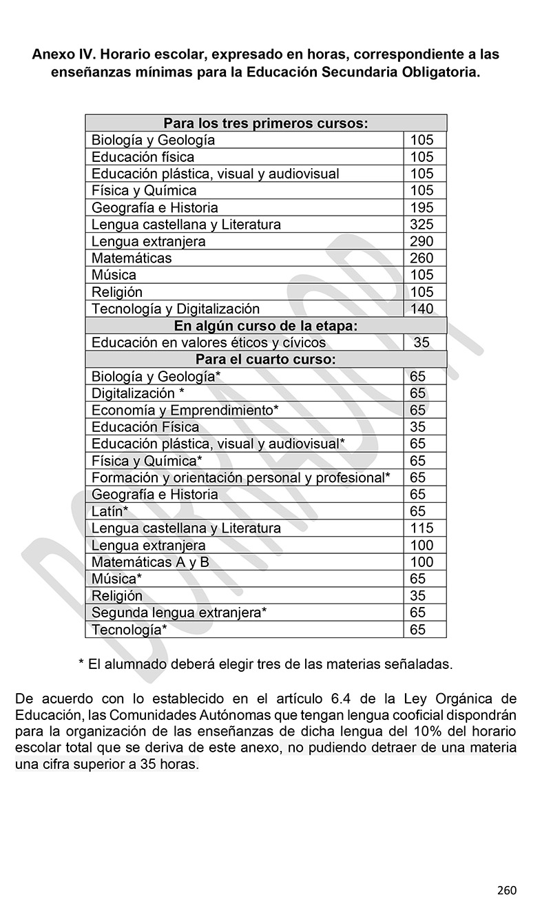 - Además de las materias obligatorias, en los tres primeros cursos de la ESO, los alumnos cursarán alguna optativa, que también podrá configurarse como un “trabajo monográfico o un proyecto interdisciplinar o de colaboración con un servicio a la comunidad” (también en 4º de la ESO. Las comunidades regularán esta oferta, que deberá incluir, al menos, Cultura clásica, una Segunda lengua extranjera y “una materia para el desarrollo de la competencia digital”. En el caso de la Segunda lengua extranjera, se garantizará su oferta “en todos los cursos”, indica el texto del Ministerio. Con objeto de “reforzar la inclusión”, las comundiades “podrán incorporar” en estos cursos las lenguas de signos españolas.