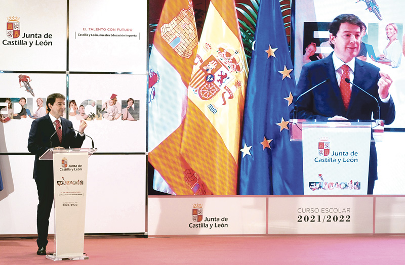 Alfonso Fernández Mañueco, durante la presentación oficial del curso escolar 2021-22. COMUNICACIÓN JCYL