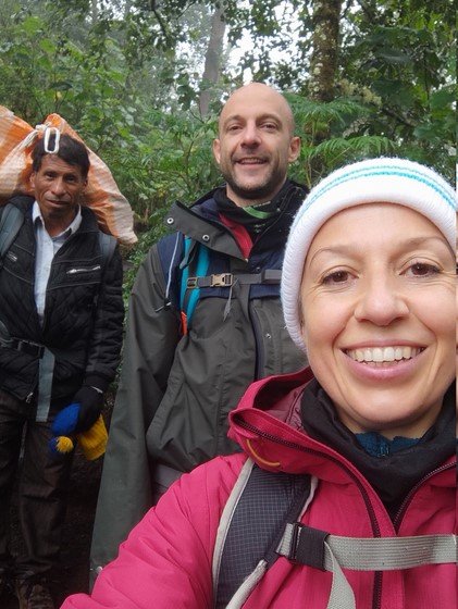 A nivel particular, queremos ayudar a personas que se dedican a llevar turistas para ver los volcanes a 4000m de altura y no tienen ninguna equipación para estar a temperaturas bajo cero o cubrirse bajo el agua. Concretamente los guías que nos subieron al volcán Acatenango, Don Victoriano de 69 años y Adelso de 32 años, apenas pudieron dormir la noche del trekking, pues se mojaron al recoger la leña para hacernos una hoguera y poder cocinar y calentarnos, y no tenían ropa de cambio, por lo que pasaron la noche mojados y sólo tenían un saco de dormir de verano. Así que, tomamos la decisión no sólo de ayudarles con la equipación y material de la montaña, sino también en ayudarles en cómo crear su propia empresa de turismo a volcanes. Para ello, se necesitaría pantalones de trekking de verano e invierno, abrigos, forro polar, ropa impermeable, guantes, ropa térmica, botas de montaña e incluso sacos de dormir de invierno y mochilas de montaña. Además, son muy inteligentes y durante el camino de regreso les estuvimos enseñando frases sueltas de inglés de uso cotidiano con cualquier turista.