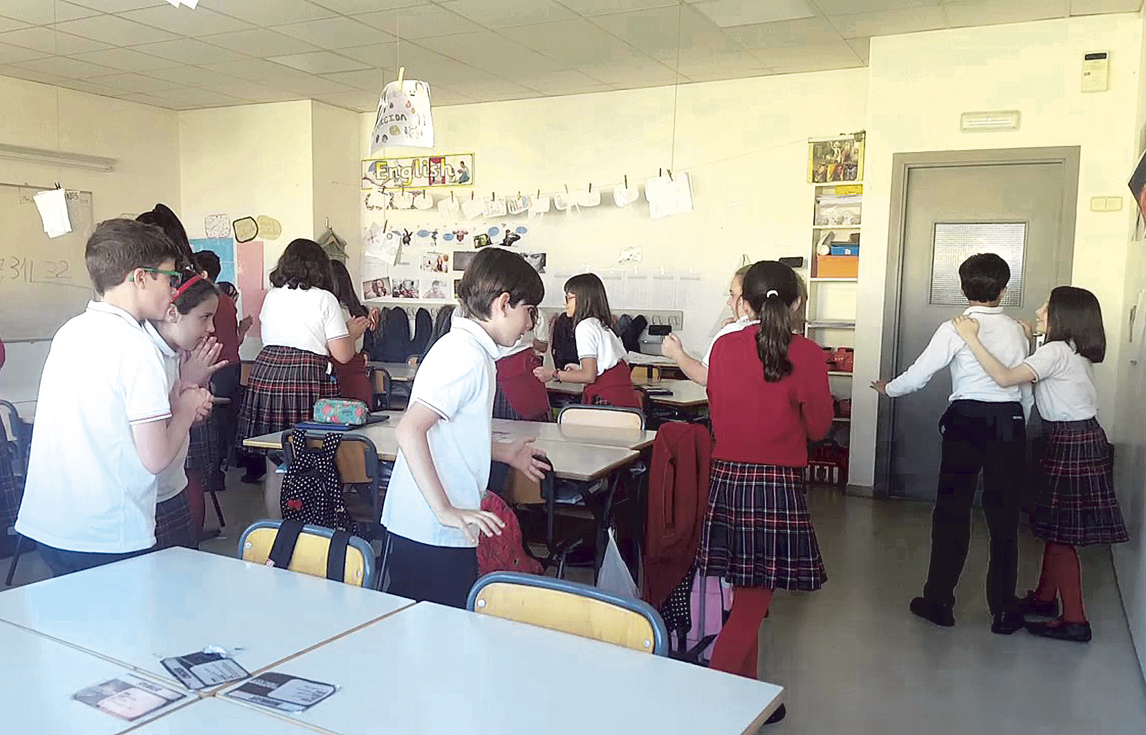 –La experiencia nos ha demostrado que es viable, más de lo que nadie imagina a priori. Es verdad que, para aplicar el programa, es importante que los espacios de tránsito, esos que se generan entre mesas, sillas, pupitres, armarios, dentro del aula, estén despejados, que el mobiliario esté bien alineado, “bien colocado”, independientemente de la disposición que haya en el aula (filas con mesas individuales, grupos de pupitres, semicírculos, etc.) Es conveniente que las mochilas, carteras y demás objetos personales no ocupen espacio en los pasillos de tránsito, por lo que, en el momento de hacer el trabajo motriz, se deben situar encima de cada silla, y meter esta dentro del pupitre. Hacer de estas acciones un hábito ayudará a interiorizar el programa de trabajo en óptimas condiciones. Además, se hacen necesarias dos pautas esenciales, que pronto el alumnado incorporará en su práctica: caminar buscando sitio libre dentro del aula, pero sin rozarse con el mobiliario ni tampoco con los compañeros. Estas premisas desencadenan una dinámica muy eficiente el uso de los espacios de tránsito, por pequeños que parezcan. El alumnado encuentra en estas formas de utilizar el aula gran satisfacción porque le divierte, le despeja, le entretiene, y por tanto colabora positivamente y, muy pronto, todo fluye con estabilidad. El aula se convierte en un espacio de aparente caos donde cada uno circula libremente, pero en realidad es un orden perfecto, donde todo se para y reina el silencio y la inmovilidad cuando el profesor para la música o pide una pausa.