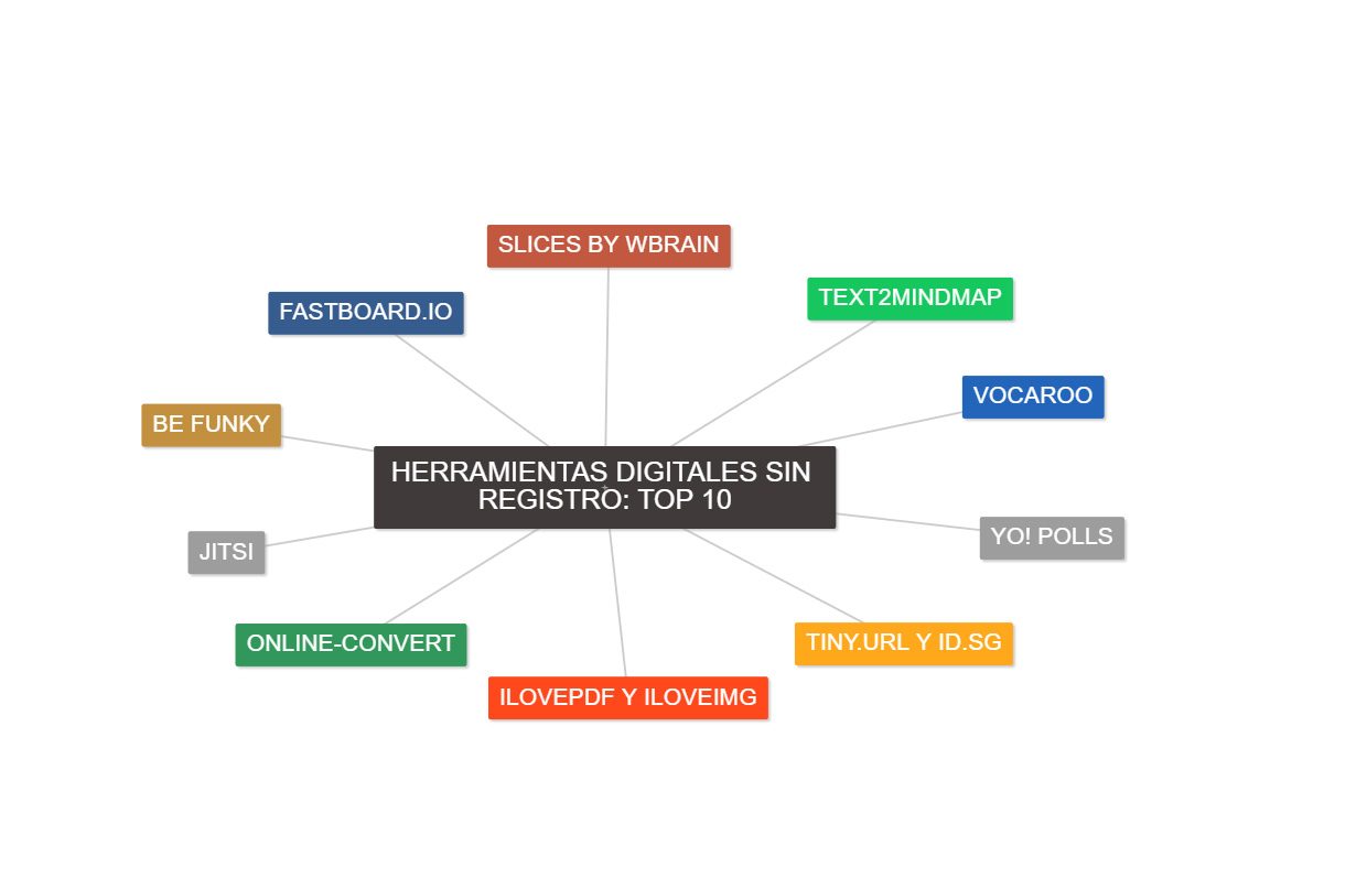 A continuación, ofrezco mi TOP TEN de herramientas digitales que no exigen registro, ni para nosotros ni para nuestros alumnos. Solo hay que entrar y empezar a usarlas. Existen muchas más y se trata de una lista personal que, obviamente, no tiene que coincidir con la vuestra. Ya os digo que al menos se han quedado fuera otras diez. Incluyo las que más empleo, tanto para síncrono, como para asíncrono o para mi trabajo personal.