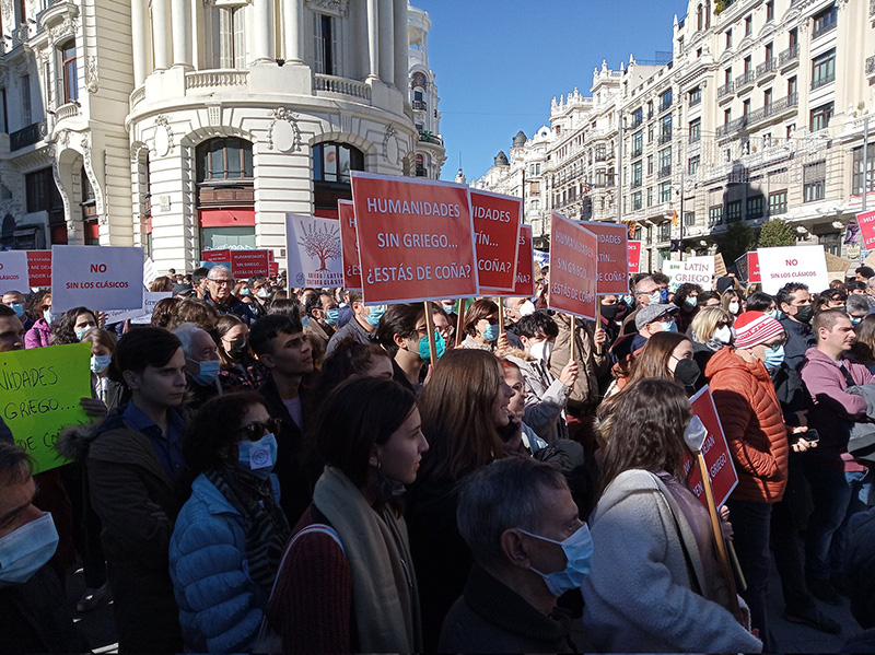 A la concentración han acudido docentes y estudiantes de varios puntos de España, como Alicia Morales, profesora en Murcia, quien ha insistido a Efe en que el texto de Educación no asegura la presencia de estas tres asignaturas en ninguno de los años de Bachillerato. «Las humanidades clásicas son materias muy importantes, con un potencial educativo, y además son la manera de estudiar nuestro pasado histórico y se tienen que proteger y promocionar», ha afirmado Morales, quien asegura que en el Bachillerato de Humanidades el griego no es materia troncal, algo que considera «impensable».
