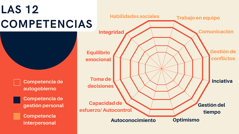 El Tu&Co se centra en 12 competencias, divididas en tres bloques: en el primero se parte de las competencias de autogobierno, como el equilibrio emocional y la capacidad de esfuerzo; en segundo lugar, están las competencias de gestión personal, como la gestión del tiempo y el autoconocimiento; y en tercer lugar se detallan las competencias interpersonales, como el trabajo en equipo y las habilidades sociales, entre otras.