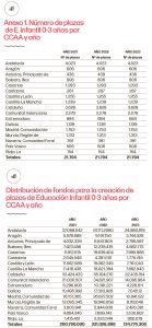 Para toda España, tal y como el Consejo de Ministros del 16 de noviembre aprobó, se destinarían 670,1 millones de euros para la creación de 65.000 plazas públicas gratuitas hasta 2023.