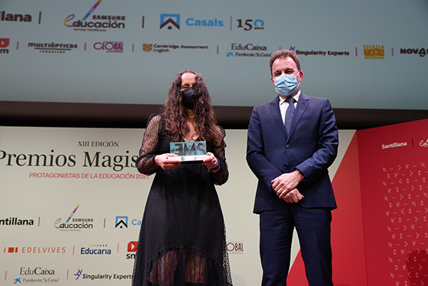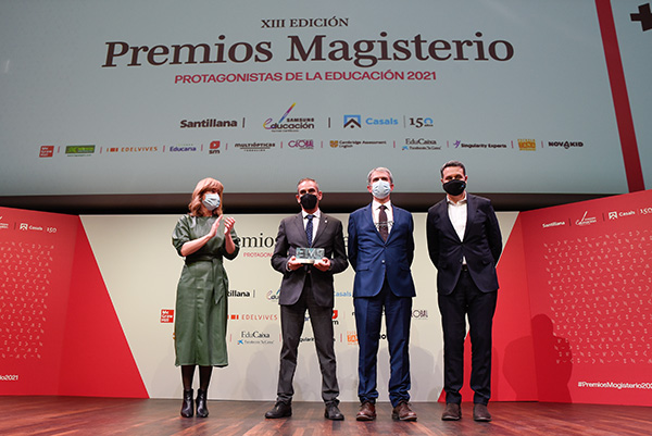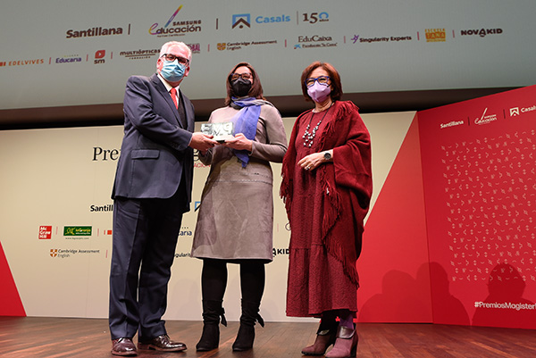 - Y la segunda Mención Especial fue para el Gobierno de Canarias. Entregaba el premio la ministra Pilar Alegría, y lo recogía Gregorio Cabrera, director general de Ordenación, Innovación y Calidad el Gobierno de Canarias, reconociendo el esfuerzo de la comunidad educativa de La Palma en estos meses que han seguido a la erupción del volcán de Cumbre Vieja y valorando el trabajo previo que les ha ayudado, como la implantación de la asignatura específica de Educación Emocional Emocrea, que ya fuera Premio Magisterio en 2019.