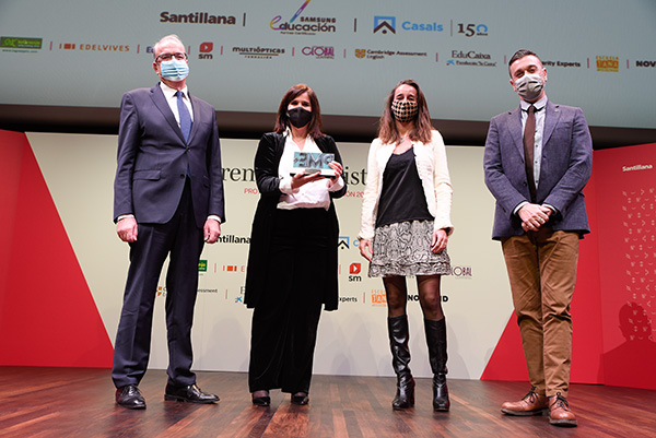Por Identitas, recoge el premio María José Javaloyes, coordinadora de Programas Infantiles de Identitas, y José Antonio Alcázar, director de Identitas. Entrega el premio Amparo Laliga, directora de Global Learning.