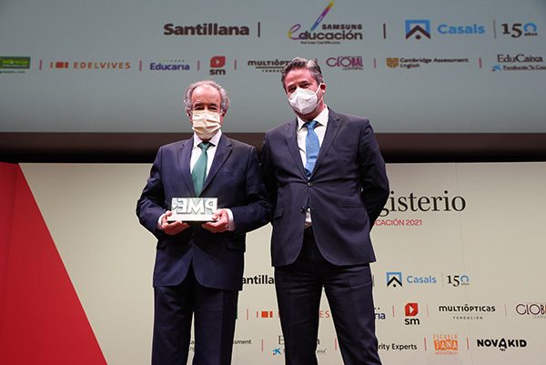 También quiso tener unas palabras de acogida el director de Siena Educación, José María de Moya, que agradecía su presencia a la ministra de Educación y Formación Profesional, Pilar Alegría –que antes de la gala había podido departir con estudiantes de Magisterio de la Universidad Complutense y de la Universidad Rey Juan Carlos– así como a las empresas colaboradoras: Samsung Educación, Santillana, Editorial Casals, Fundación Multiópticas, McGrawHill, Edelvives, Novakid, La Granja ability training center, Grupo SM, Educaria, Cambridge Assessment English, Global Learning, Singularity Experts, Educaixa y JANA Artes Escénicas.
