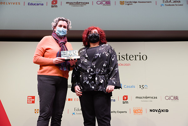 - Por Identitas, recogían el galardón María José Javaloyes, coordinadora de Programas Infantiles de Identitas, y José Antonio Alcázar, director de Identitas. Javaloyes lo hacía con un emotivo recuerdo a su padre, Juan José Javaloyes, maestro desde los 17 años y cofundador de Identitas, fallecido por Covid a principios de este año.