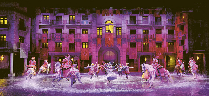 En el espectáculo ‘A Pluma y Espada’, el espectador puede vivir las aventuras de Lope de Vega en cinco escenarios diferentes. © PUY DU FOU ESPAÑA