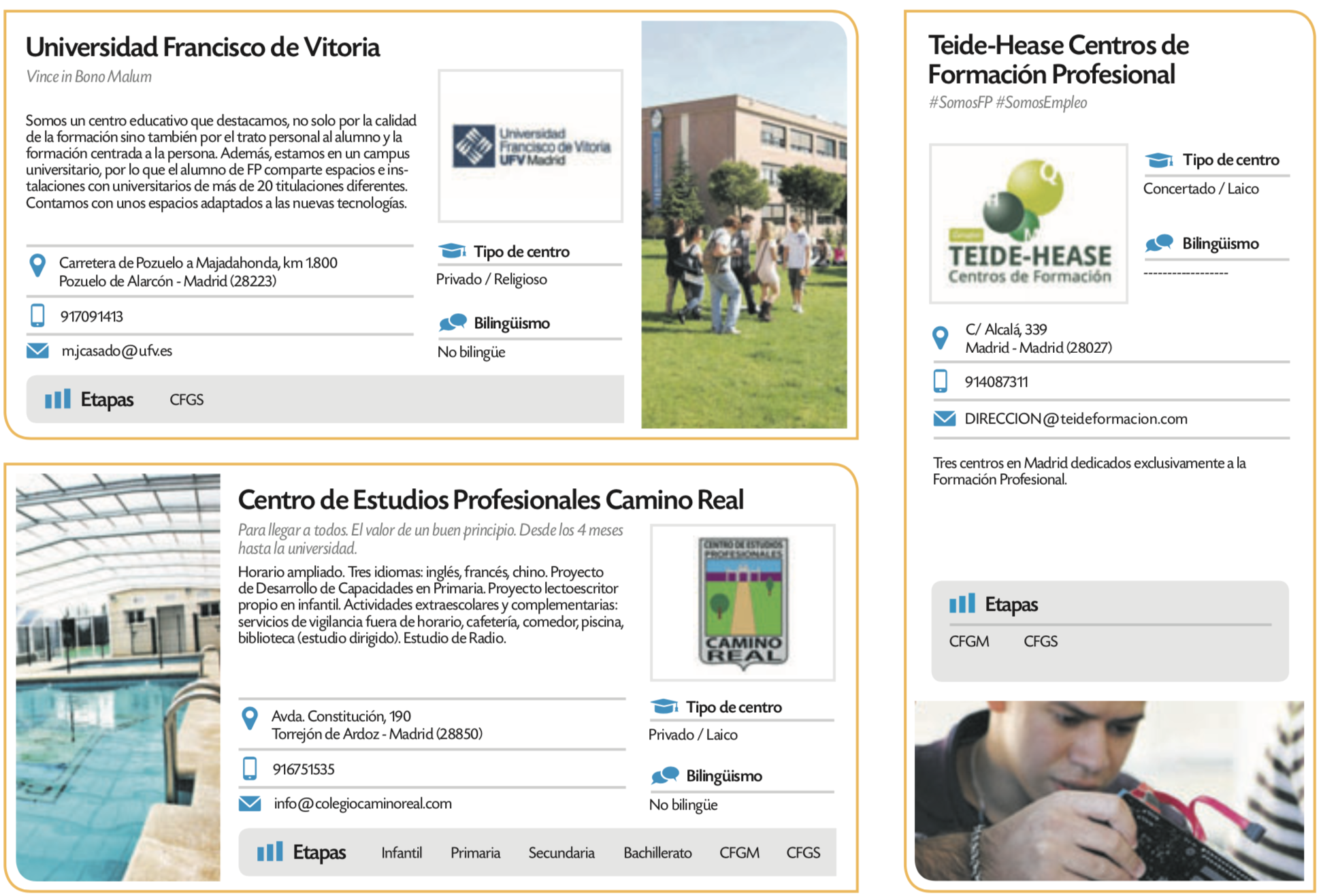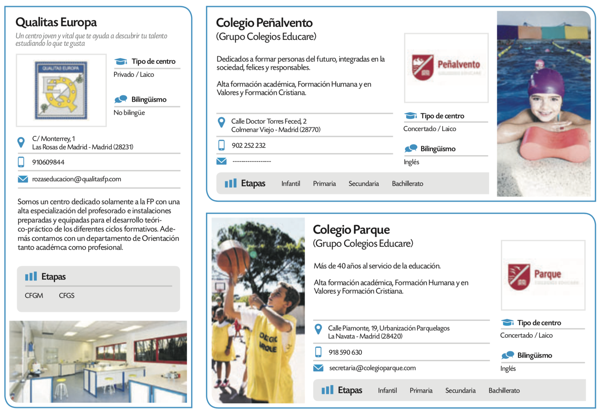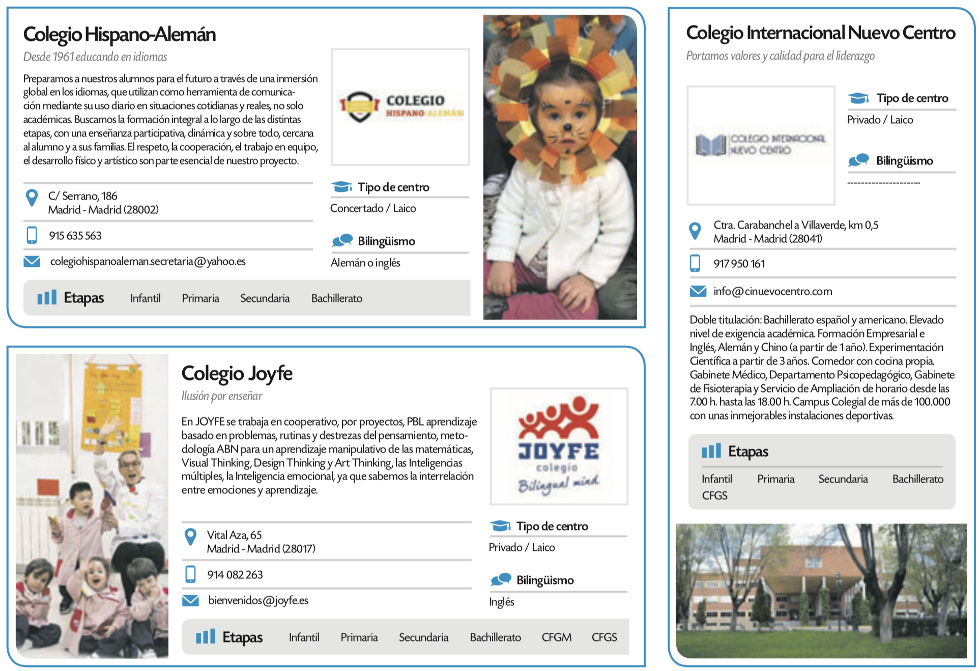 A continuación os ofrecemos una ficha resumen de cada colegio, pero sin duda lo más importante es que podías hablar con ellos. Esperamos que podáis encontrar lo que estáis buscando y os ayudemos a acertar en vuestra decisión. ¡Disfrutad de la Feria de los Colegios!