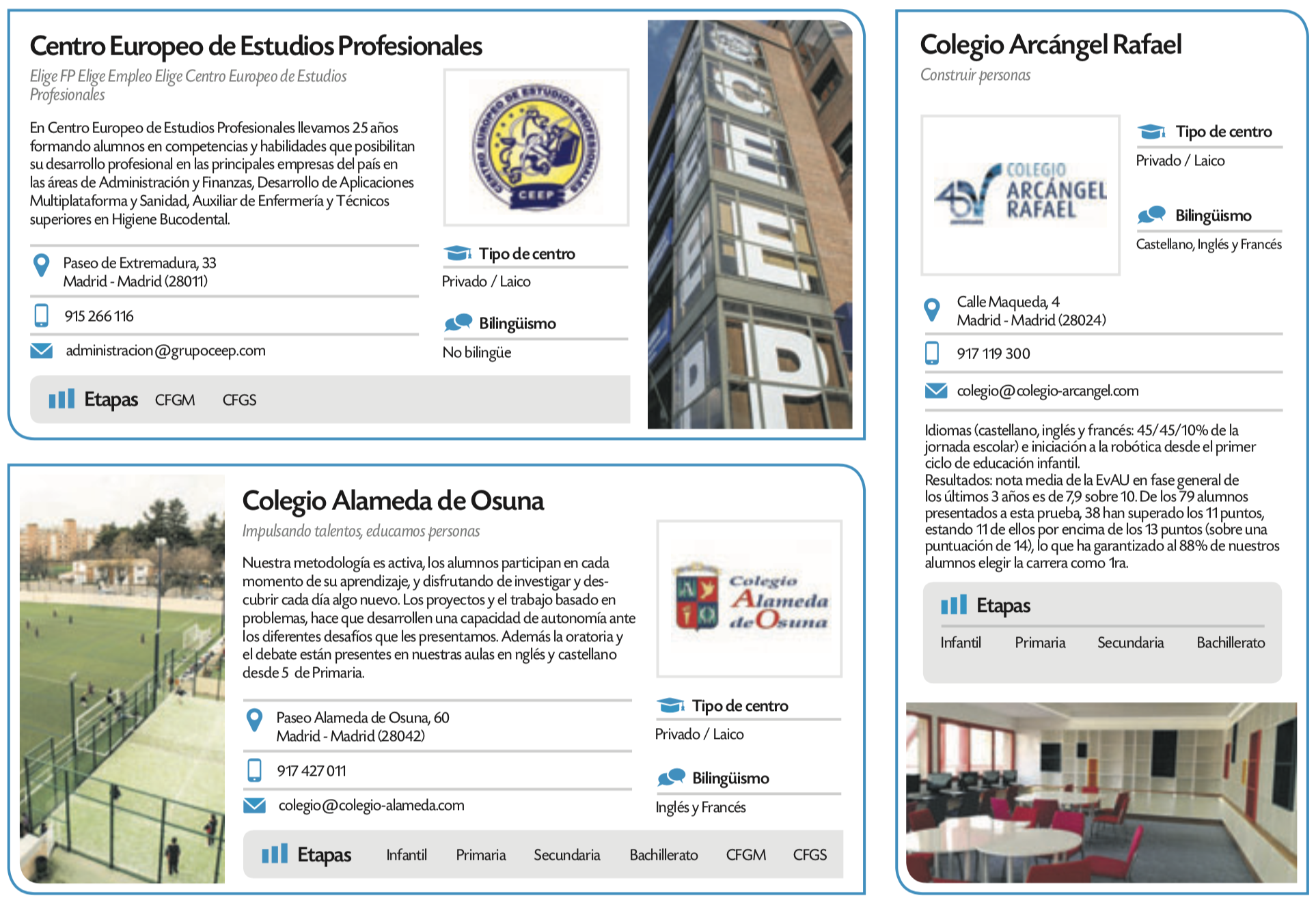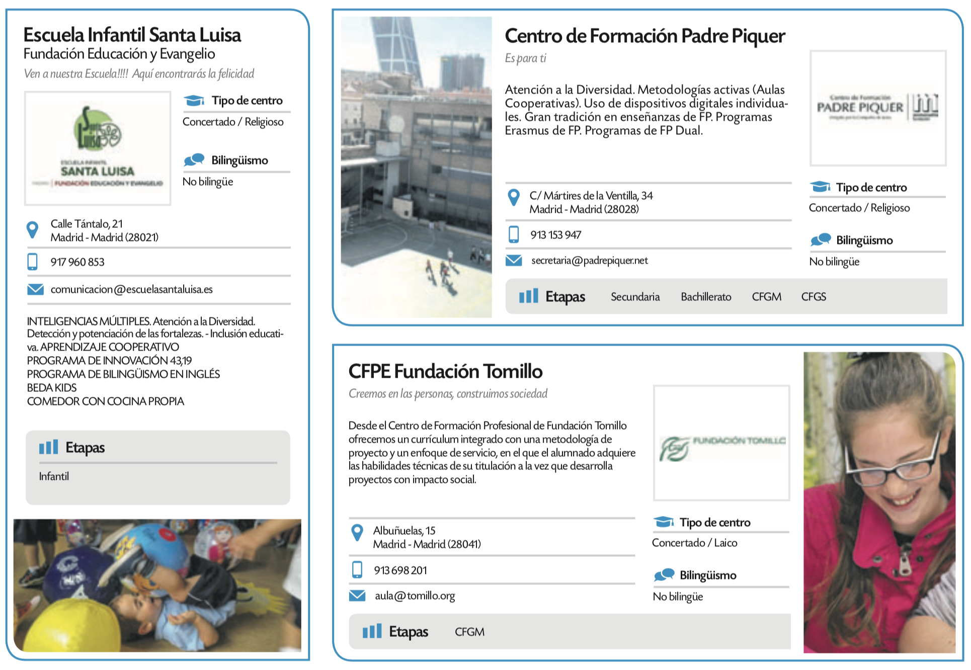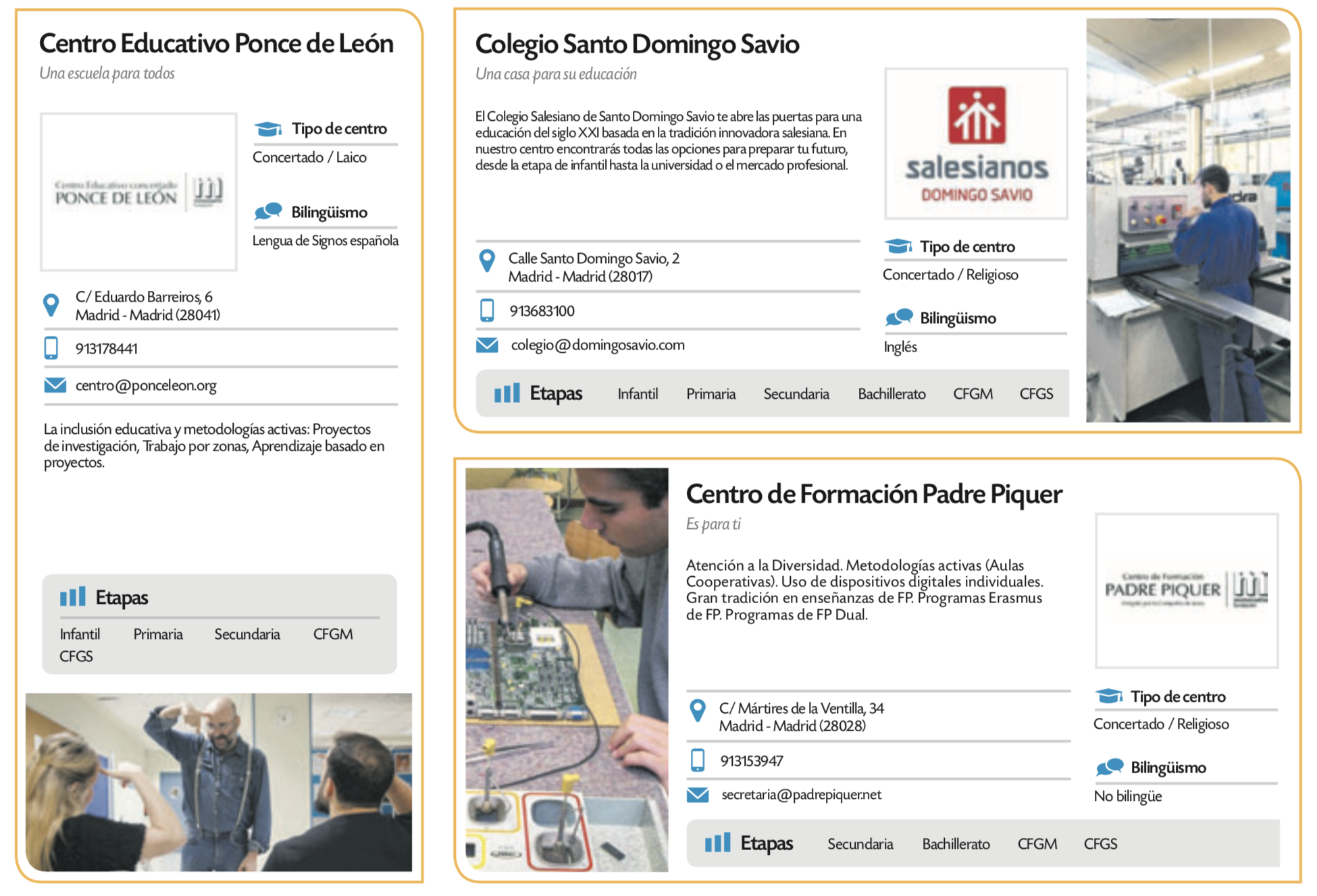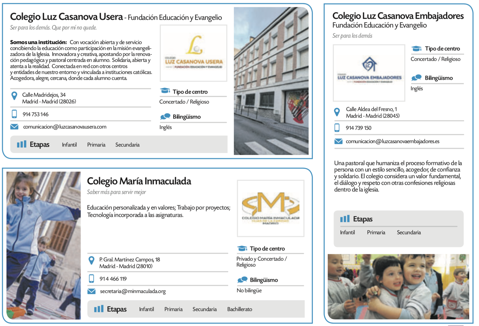 En la Comunidad de Madrid hay alrededor de 1.600 colegios donde cada año arrancan su educación más de 60.000 niños. Muchos se pasarán los próximos 9 años en sus aulas. Habrá quienes incluso lleguen a estar 15 años en el centro hasta finalizar el Bachillerato. La decisión no es fácil. Hay colegios bilingües y trilingües. Colegios que apuestan por el trabajo por proyectos o que ponen el foco en la inteligencia emocional. Los hay que aplican metodologías Montessori y quienes ponen de relieve su propia metodología. Los hay religiosos y laicos. Algunos han implantado formas de trabajar importadas de países nórdicos y otros han creado equipos de investigación para mejorar sus proyectos. Y todos ellos pueden ser públicos, privados o concertados. Es decir, las familias se tienen que enfrentar a una decisión muy compleja. Deben elegir entre miles de opciones distintas cuál es la que mejor se adapta a lo que esperan de la educación de su hijo. Desde la Feria de los Colegios os queremos ayudar a facilitar esta decisión.
