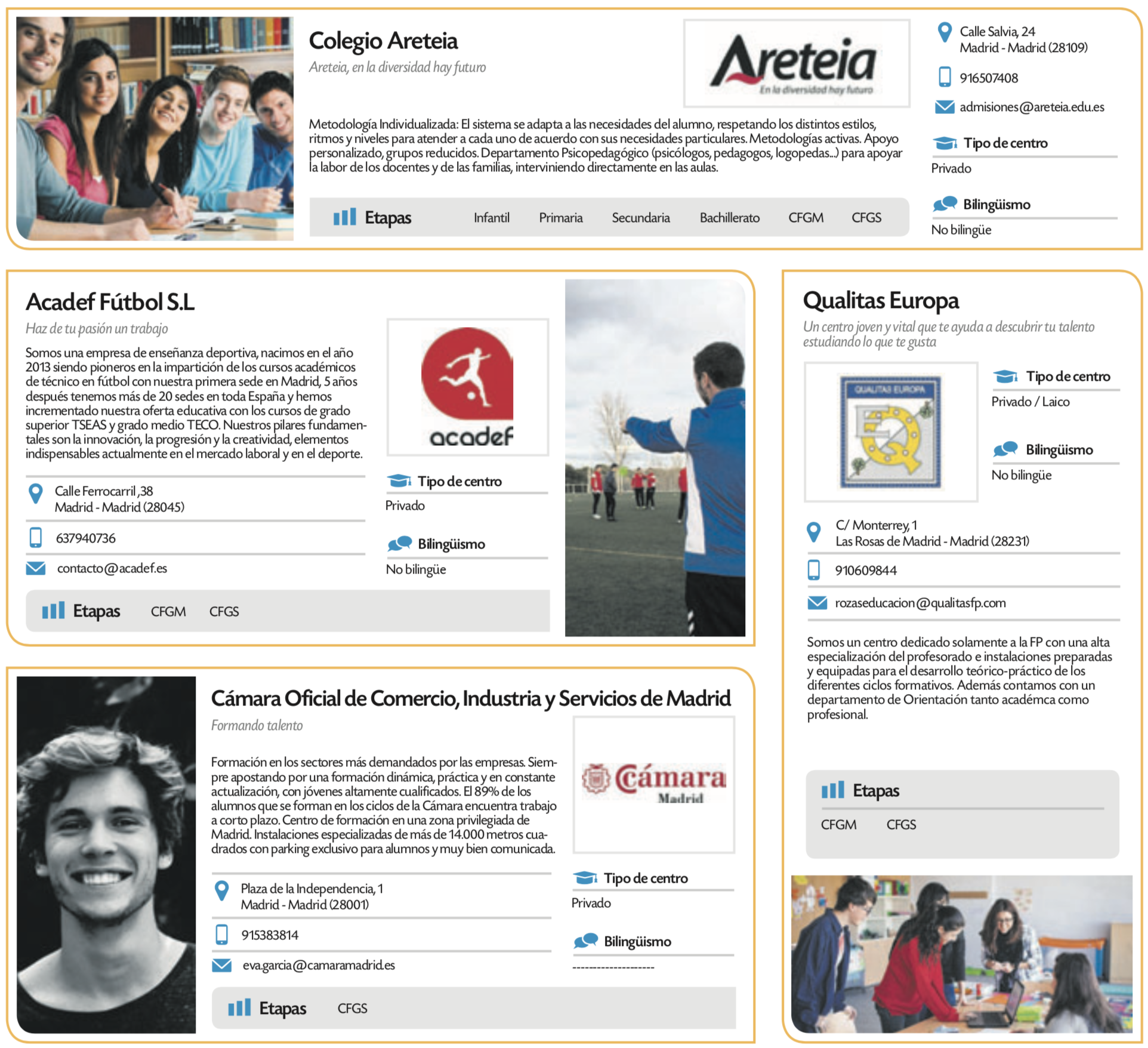 La Feria de los Colegios ofrece un espacio para FP en donde los alumnos podrán encontrar la oferta de todas las familias de Ciclos Formativos ofrecidos.