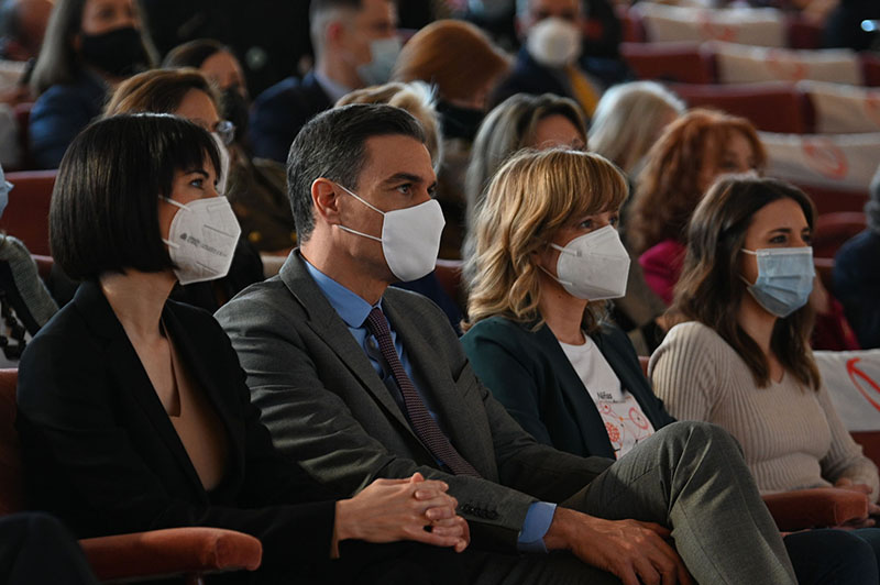 El presidente del Gobierno, Pedro Sánchez, junto a las ministras de Educación; Ciencia e Innovación, e Igualdad.
