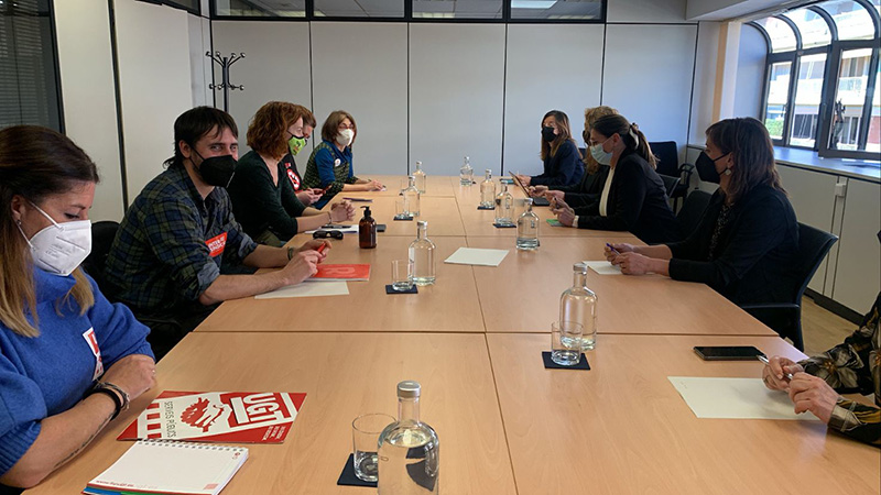 Tras esperar una hora, los representantes sindicales se han reunido con la secretaria general del departamento, Patricia Gomà. © Ustec
