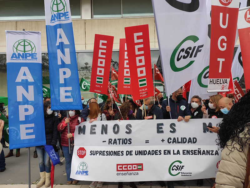 Los sindicatos CSIF, ANPE, CCOO y UGT protestan contra lo que consideran un “ataque a la integridad” del sistema educativo público andaluz tras la pérdida de más de un millar de unidades en los últimos tres años, según un comunicado.