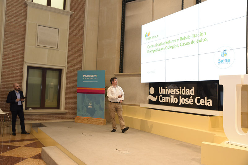 A las 9:30 horas comenzó la sesión de Iberdrola, con David Palacios, responsable de comunidades solares, y Rodrigo López, de edificación y eficiencia energética. Una charla más que necesaria en unos tiempos donde el gasto de energía supone un quebradero de cabeza para los centros educativos, y en los que Iberdrola aportó su granito de arena con posibles soluciones para paliar los altos precios.