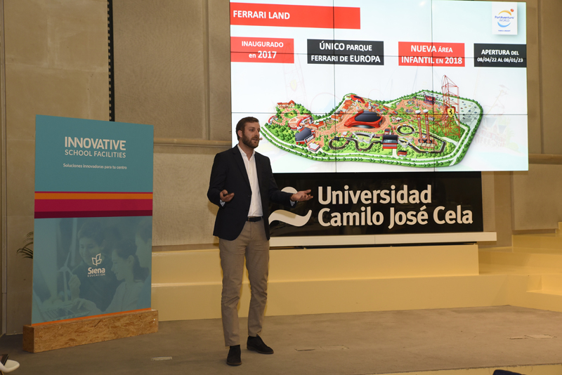 La maratón de Innovative School Facilities continuó dando paso al ocio, igualmente necesario en la Educación. Joan Marc Bergadà, responsable del departamento Grupos y Escuelas, explicó todas las oportunidades de disfrutar de un parque único como PortAventura con todas las ofertas para grupos escolares disponibles. Una excursión diferente e ideal como viaje de fin de curso, ya que además de ocio, el turismo también es posible, ya que muchas de las ofertas incluyen pensión completa y alojamiento durante una noche.