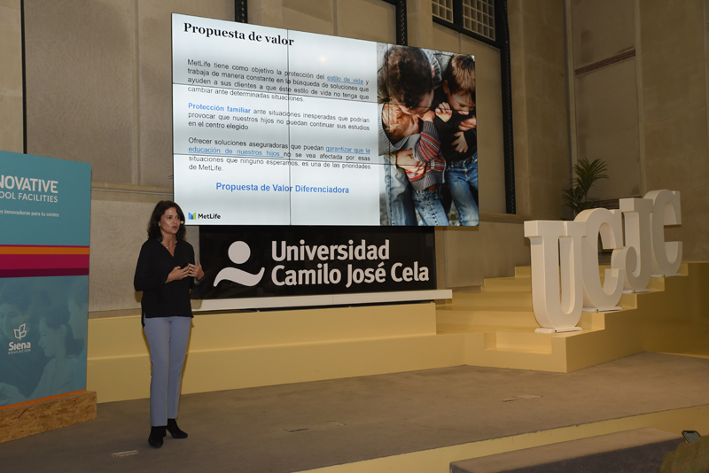 Patricia Jiménez y Teresa Archaga, de Metlife, fueron las encargadas de explicar su proyecto a los centros educativos en el evento de Innovative School Facilities. Como empresa de seguros, no solo se compromete por esa parte, sino con el futuro de la Educación de los alumnos en caso de que pasen por dificultades. Se declaran como una empresa que se les reconoce por la «confianza y la solvencia», alegando a sus 100 millones de clientes en más de 40 países.