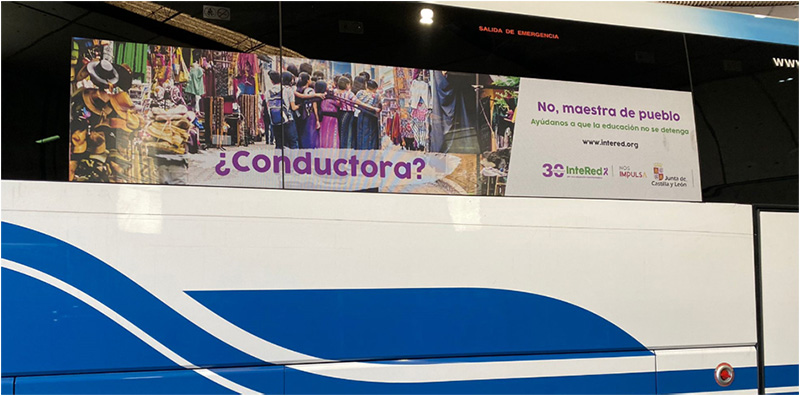 La ONGD educativa InteRed, con el apoyo de la Junta de Castilla y León, reconoce a través de la línea regular de autobús Valladolid-Aranda de Duero, la valiosa labor educativa de maestras y maestros rurales, mayoritariamente mujeres, que hacen posible el derecho y acceso a la educación en las zonas rurales de todo el mundo y que hacen que la Educación no se detenga.