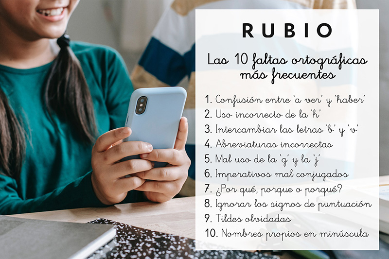 Los expertos pedagogos de la afamada editorial de cuadernos didácticos RUBIO han recopilado las 10 faltas de ortografía más comunes entre niños y adolescentes para que podamos detectarlas y ayudar a nuestros pequeños a evitarlas y corregirlas: