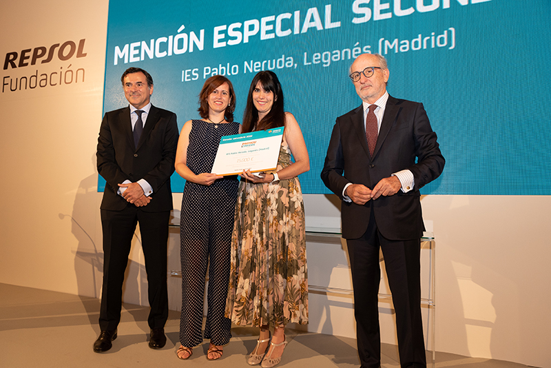 Después de entregaron las menciones especiales a los centros de Primaria y Secundaria, que recayeron en el CEIP “Conde Campillo”, de Cehegín, Murcia; y en el IES “Pablo Neruda” de Leganés, Madrid. Ambos contarán con 15.000 euros para desarrollar un proyecto de innovación para la transformación metodológica de su centro educativo, así como actividades lúdicas y formativas para sus alumnos relacionadas con la ciencia y la sostenibilidad de la mano de los mejores divulgadores, artistas e influencers.