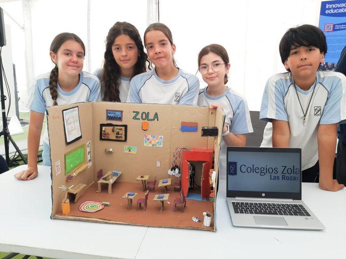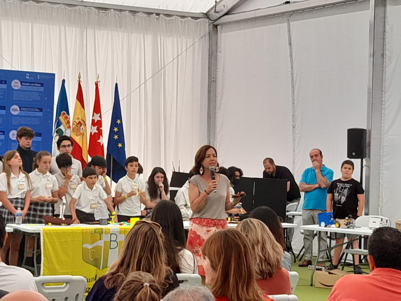 Tras la presentación del alcalde, los alumnos de seis colegios e institutos mostraron al público el resultado de su trabajo a lo largo del curso. En concreto, Víctor, Martín, Georgios, Pelayo y Nicolás, del CEIPSO «El Cantizal», expusieron el proyecto Ecocoche acompañados por sus profesores Jesús y Maribel; desde el colegio «Bérriz» Mario, Alejandro, Enrique, Berta, Clara y Alejandro exhibieron Inventa que te invento respaldados por su profesor Borja, y sus compañeros de Secundaria Amanda, Hugo, Marcos, Javi, Pantico y Maya explicaron con su profesor Sergio su proyecto Desafío V Centenario. Desde el colegio «Zola», Candela, Ainara, Sofía, Sara y Neel detallaron el funcionamiento del Super Robot 6 D, acompañadas de sus profesoras María y Violeta. Los alumnos Teo, Gonzalo, Salvatore y Eduardo y su profesor Jesús, del IES «Carmen Conde», acudieron a la cita con su Air quality measuring car. Y Pablo y María, con sus profesores Tati y Luis, del Colegio «Santa María de Las Rozas», presentaron Terramóvil. Por último, Triana, junto con su profesora Carmen, del IES El Burgo-Ignacio Echeverría, presentó su proyecto La importancia del hidrógeno como futura fuente de energía. Proyectos en los que la robótica, el diseño 3D, el reciclaje, las energías renovables y los drones se alían para permitirnos avanzar hacia un mundo más sostenible.