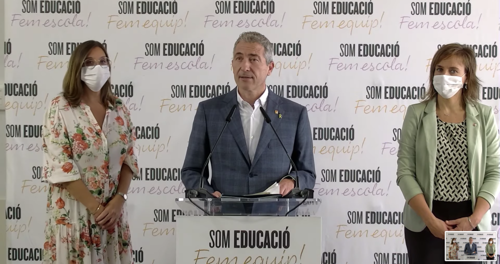 La secretaria general de Educación de la Generalitat, Patrícia Gomà; el consejero de Educación, Josep Gonzàlez-Cambray; y la secretaria general de Transformación Educativa, Núria Mora.