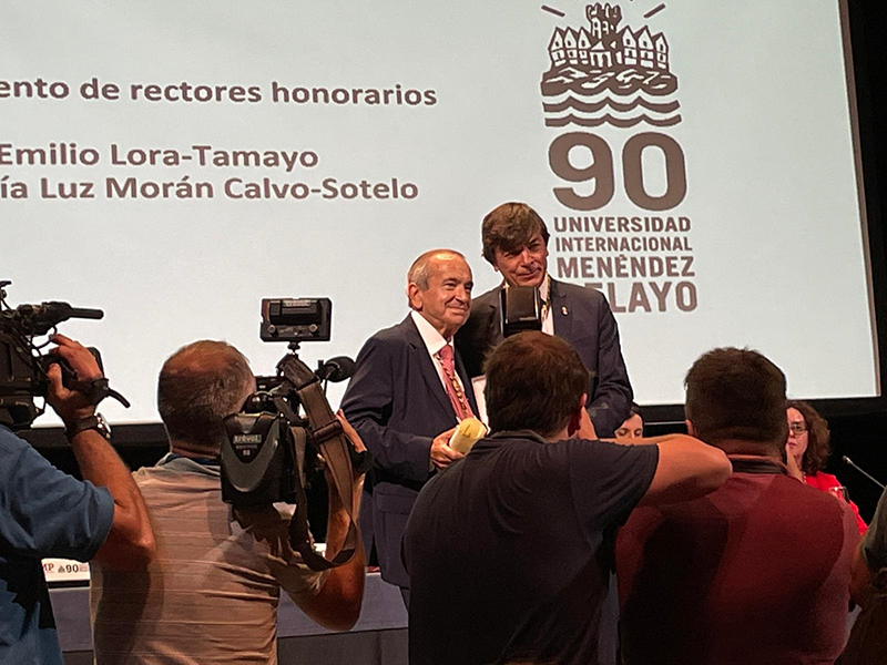 La Universidad Internacional Menéndez Pelayo (UIMP) ha nombrado Rector Honorario a Emilio Lora-Tamayo, actual rector de la Universidad Camilo José Cela, en un evento celebrado en el Palacio de la Magdalena en Santander. Lora-Tamayo, que fue rector de la UIMP durante el curso académico 2017-18, ha recibido este nombramiento en uno de los actos que han tenido lugar durante la semana de celebración del 90 aniversario de la Universidad Internacional Menéndez Pelayo.