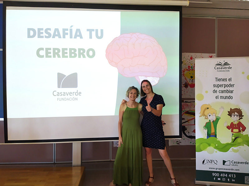El proyecto “Desafía tu Cerebro”, que lleva a cabo la Fundación Casaverde, nace con el objetivo de concienciar al alumnado de Primaria y Secundaria sobre hábitos de vida neurosaludables, de una manera amena y divertida, con actividades que ponen en marcha funciones cognitivas como la memoria, la velocidad de reacción, la percepción visual o las praxias, entre otras. Estas actividades en forma de talleres son impartidos por profesionales de la rehabilitación neurológica con experiencia en el ámbito infantil. Dentro de estos talleres se incluyen los hábitos neurosaludables, adaptados a las edades de cada colectivo, relacionados con hábitos de vida como alimentación, interacción social o emociones. Los docentes lo han acogido de manera muy positiva, considerando que las actividades son “divertidas, muy apropiadas y participativas”.