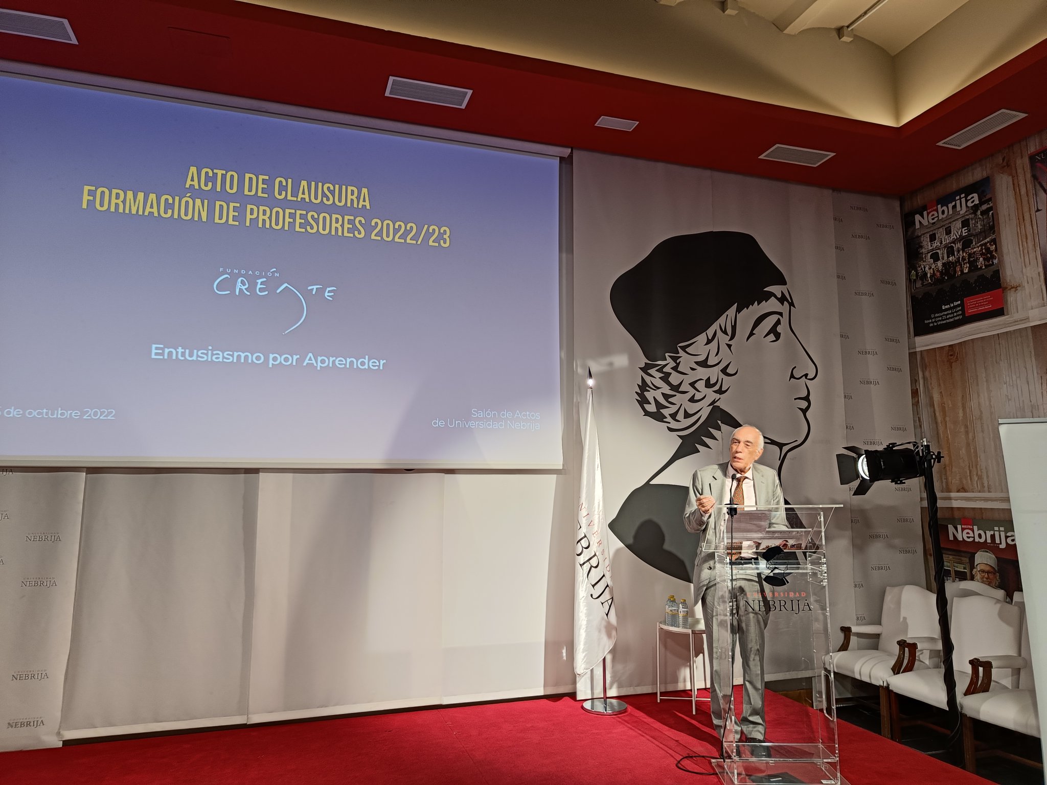 #ClausuraProfesoresCréate22 ➡️ Continúa en @Nebrija la intervención de @MarioAlonsoPuig, que esta tarde transmite un mensaje de admiración y motivación a todos los profesores y profesoras que participan en la clausura de los programas de formación docente de @FundCreate. pic.twitter.com/vP87zTlzus
