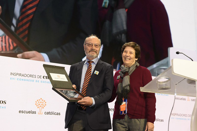 Durante la inauguración se vivió también un momento muy especial cuando se rindió homenaje a José Mª Alvira, religioso marianista y secretario general de Escuelas Católicas de 2012 a 2020, a quien debido a la pandemia no se le pudo realizar en su momento la despedida que merecía.