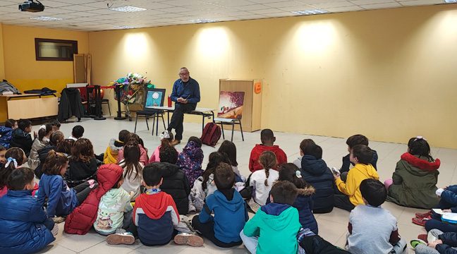 Nueve de la mañana. Ensanche de Vallecas. Ricardo Gómez (Segovia, 1954) cruza la entrada del CEIP «Loyola de Palacio». Él, que fue profesor antes que escritor, se siente en casa. Le esperan dentro más de cien alumnos de 2º de Primaria que aguardan impacientes su llegada. «No se creen que vayan a conocerte; desde que empezaron a leer tu libro no preguntan otra cosa», comentan Silvia y Marina, las dos maestras del centro que han participado en esta actividad que arranca hoy y que a lo largo del curso recorrerá los centros educativos de este distrito del sudeste madrileño.