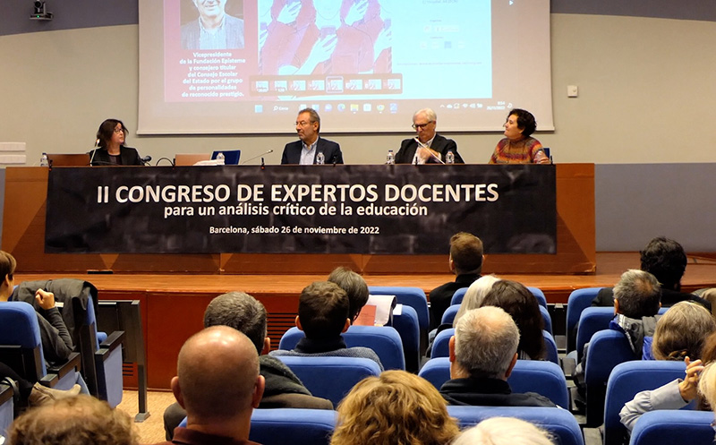 Estos profesores nos reunimos bajo el lema de “expertos educativos”. Como soy una mujer de letras y no digo palabras en latín para quedar bien, sino porque es mi especialidad, quiero recordar que la etimología de la palabra “experto” proviene de expertus ‘que tiene experiencia, perito, entendido’, del participio pasivo de experiri. Si de algo entiendo un poco y en algo tengo veinte años de experiencia es, precisamente, de educación. Había compañeros mucho más expertos que han escrito algunos de los libros que deberían estar en todas las salas de profesores de los institutos del país: Xavier Massó (El fin de la educación), Enrique Galindo, Olga García y Carlos Fernández Liria (Escuela o barbarie, entre otros), Ricardo Moreno (Panfleto antipedagógico, entre otros muchos), Pascual Gil (Schola delenda est?) y Andreu Navarra y David Rabadà, coordinadores de la Educación cancelada, el más reciente que reúne a todos los autores que he nombrado y además a Enrique Moradiellos, Marta Vela, Joan-Carles Mèlich, Héctor Ruiz, Francisco López Rupérez, Antoni Hernández-Fernández, Joan Buades, entre les cuales tengo el honor de incluirme. Un acertado intento de Rabadá y Navarra de agrupar esta mirada crítica sobre la educación en nuestro país. El adjetivo “experto” también desató la polémica. Tiene gracia que no nos podamos autodenominar expertos cuando nos imponen supuestos expertos educativos, que no han pisado un aula en su vida, ministros, consejeros, directores de currículum, formadores, etc. Déjenme agradecer de antemano a las organizadoras, Eva Sierra, de la Fundación Episteme e Irene Murcia de la Asociación OCRE, el reconocimiento.